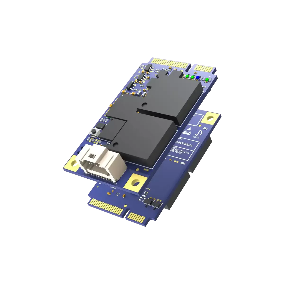 DE150100 MPCIe MIL-STD-1553 Module 2 CH is a full-size PCI express mini card. DE150100 supports 2-channel transformer-coupled dual-redundant MIL-STD-1553B interface. It is suitable for embedded and portable systems. DE150100 supports bus controller, remote terminal, and bus monitoring operating modes.